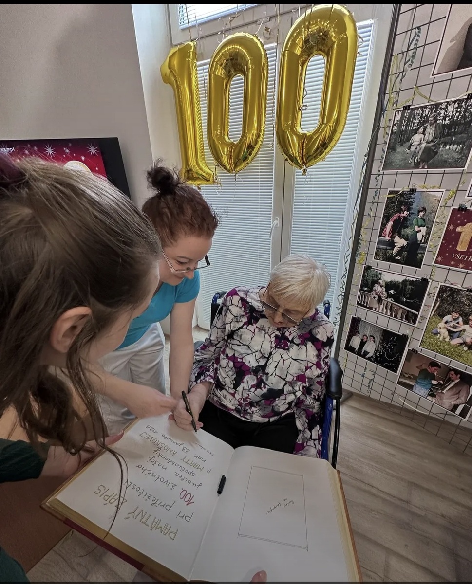 Sto rokov života, skúseností a spomienok- takýto dar oslávila naša najstaršia občianka. Rajecké Teplice zažili v piatok chvíľu, ktorá sa nezapisuje len do kroniky mesta, ale najmä do sŕdc ľudí. 23. januára 2026 sa pani Marta Knošková dožila požehnaného veku 100 rokov- jubilea, ktoré si zaslúži úctu, rešpekt a spoločnosť. Svoje narodeniny oslávila obklopená dcérou, priateľmi a spoluobyvateľmi v Zariadení pre seniorov Harmónia, kde vládla príjemná, ľudská a srdečná atmosféra. Osobne jej prišiel zablahoželať aj primátor mesta Ambróz Hájnik. Pani Marte poprial nám. Pevné zdravie a stále taký zmysel pre humor, ktorým je známa. Iným a výnimočným momentom oslavy bolo aj blahoželanie od jej spoluobyvateľa, ktorý sa v tomto roku dožije krásnych 99 rokov. Všetci jej spoločne vytvorili kyticu z krásnych papierových kvetov, ktorá jej nikdy nezvädne. O slávnostnú náladu sa postarali aj členovia folklórneho súboru Oprášené krbce, ktorí zahrali aj obľúbenú pesničku oslávenkyne- Zahučali hory. Pani Marta si k svojmu jubileu zaželala predovšetkým zdravie a čo najviac dní bez bolestí. Jej skromné prianie je pre nás všetkých pripomienkou, že najcennejšie sú obyčajné dni prežité v zdraví, v pokoji a v prítomnosti druhých. Aj yám prajeme pevné zdravie, pokojné dni a veľa láskavých chvíľ. Ďakujeme, že ste súčasťou príbehu nášho mesta.