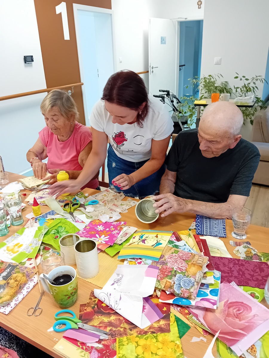 Navštívila ich aj dobrovoľníčka pani Zdenka, ktorá ich povzbudila v tvorivosti. V sprievode ľudovej hudby vytvárali ozdoby z modelovacej hmoty, pričom vládla pokojná a veselá atmosféra.